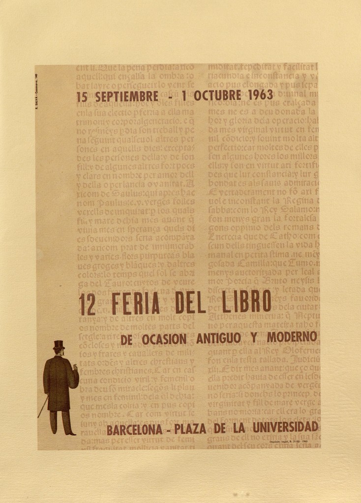 Us mostrem un ampli ventall dels cartells que el Gremi de Llibreters de Vell de Catalunya. Cada fira ha constituït, per ella mateixa, un esdeveniment per la reproducció de gravats antics o moderns, encarregats en aquest darrer cas a algun artista de prestigi reconegut.