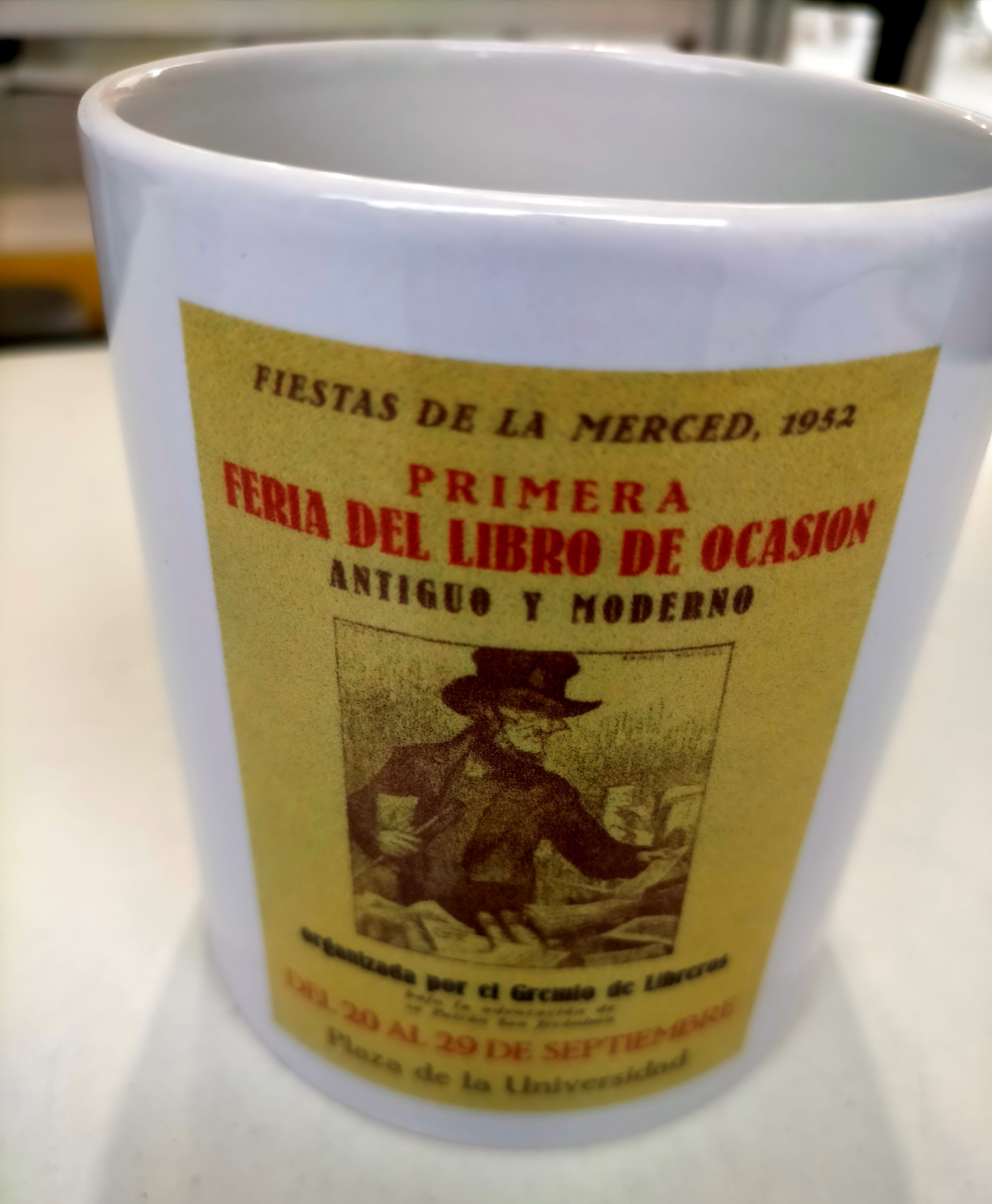 Tassa ceràmica “Primera Feria del Libro de ocasión Antiguo y Moderno”